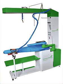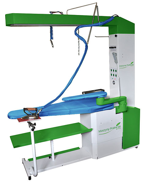 Stół prasowalniczy z odsysaniem i nadmuchem powietrza oraz wbudowaną wytwornicą pary jest stanowiskiem uniwersalnym, przeznaczonym do prasowania wszystkich rodzajów odzieży. Zastosowano w nim nowoczesne rozwiązania takie jak sterowanie odsysaniem przez fotokomórkę, elektryczną regulację wysokości za pomocą pilota, automatyczne przełączanie odsysania i nadmuchu z płyty prasowalniczej na prasulec. W standardzie stół posiada również oświetlenie, formę do prasowania rękawów oraz formę detaszerską.